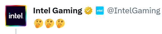 재미있는 것은 위 트윗에 달린 댓글입니다. 무려 인텔의 게임 담당 계정인 @IntelGaming에서 생각하는 모양의 아이콘을 달아놨네요. AMD가 아니라 인텔입니다. 인텔이요.