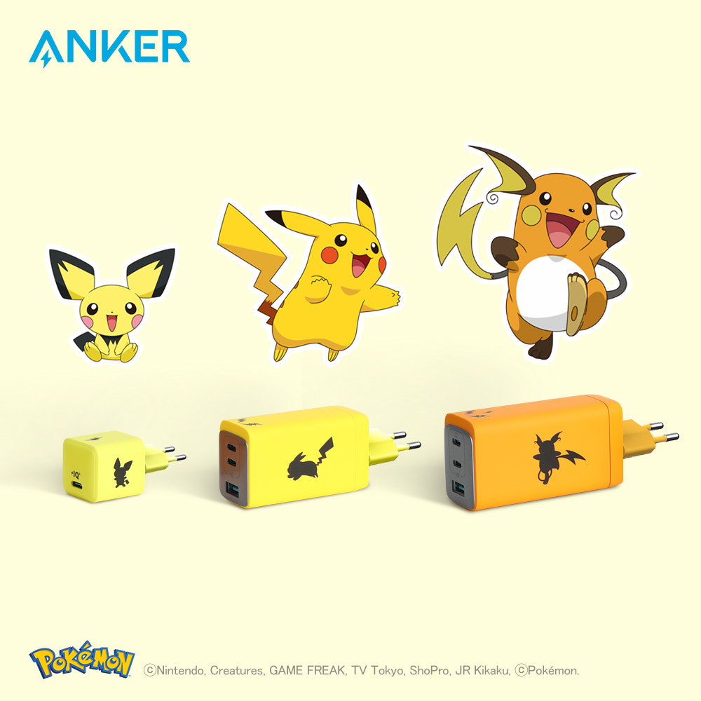 앤커(ANKER)사가 전기 타입 포켓몬인 피츄, 피카츄, 라이츄를 각인한 초고속 충전기 포켓몬 에디션 3종을 출시합니다.