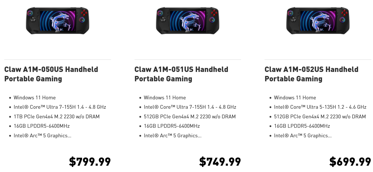 인텔의 코어 울트라 프로세서를 갖고 나와 화제가 된 MSI의 게이밍 UMPC/핸드헬드인 클로(Claw) A1M의 가격이 공개되었습니다.