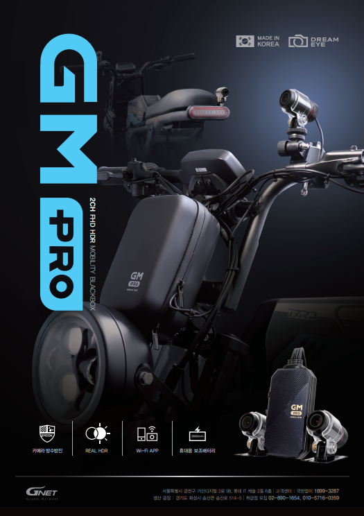 지넷시스템에서 전동 킥보드 등 새로운 개인형 이동장치(PM , Personal Mobility) 전용 블랙박스 GM PRO를 출시합니다.