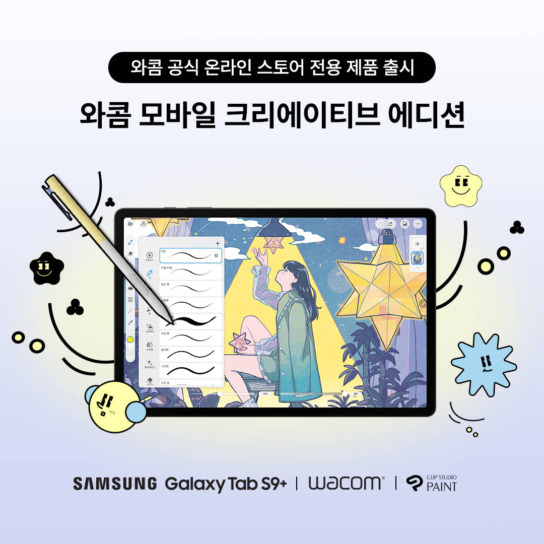 와콤이 와콤 원 펜 2와 삼성 갤럭시 탭 S9+, 클립스튜디오 페인트 프로 앱을 결합한 와콤 모바일 크리에이티브 에디션을 선보입니다.