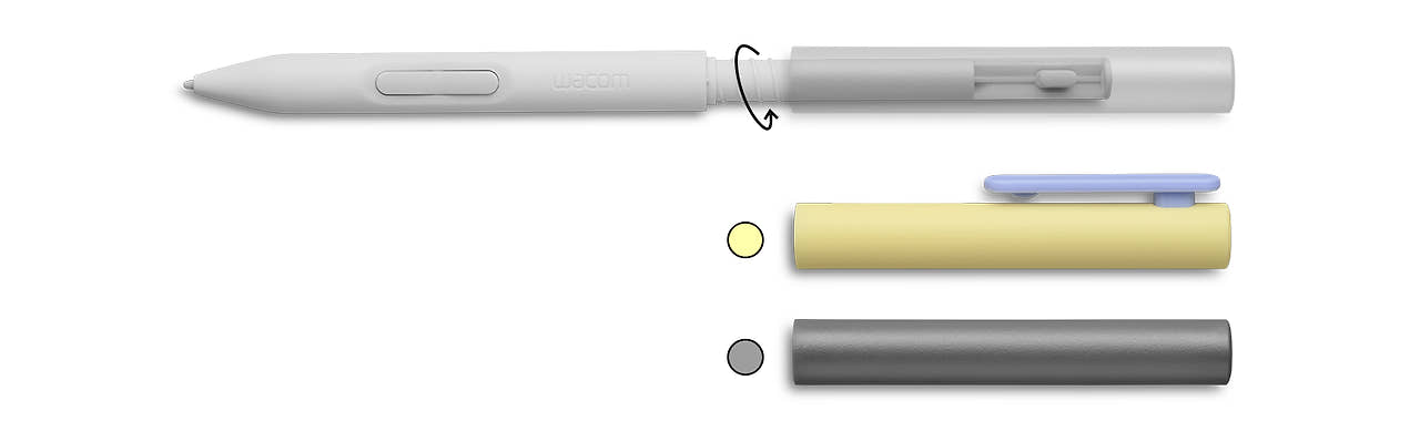 와콤 원 펜 2는 갤럭시 탭 S9+에서 호환 가능한 무선, 무충전, 무배터리 방식의 디지털 펜입니다. 4096레벨의 필압을 지원하며 편안한 그립감을 제공하는 이 제품의 구성품으로는 옐로-라벤더 컬러의 클립형 상단을 추가 제공, 취향에 따라 펜을 결합해서 사용할 수 있습니다.