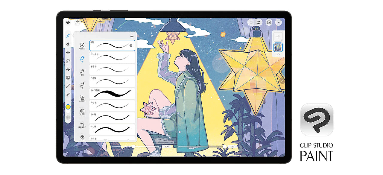 대표적인 드로잉 앱 가운데 하나인 클립스튜디오 페인트 프로는 3년 이용권이 제공됩니다. 태블릿용 심플 모드가 탑재되어 처음 그림 창작을 하는 이용자들도 바로 활용할 수 있습니다.