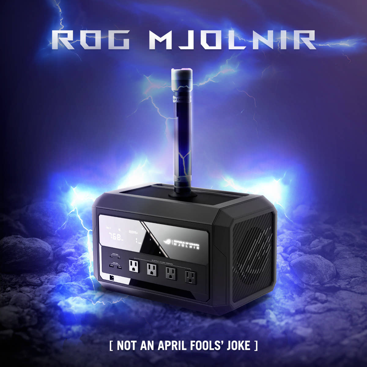ROG 묠니르(Mjornir)라는 제품을 소개하면서 태양 에너지를 받아 충전할 수 있으며, 번개를 불러 앞길을 밝혀줄 수도 있다고 했습니다. 여기까지야 그다지 재미없는 평범한 만우절 개그 정도겠죠.
