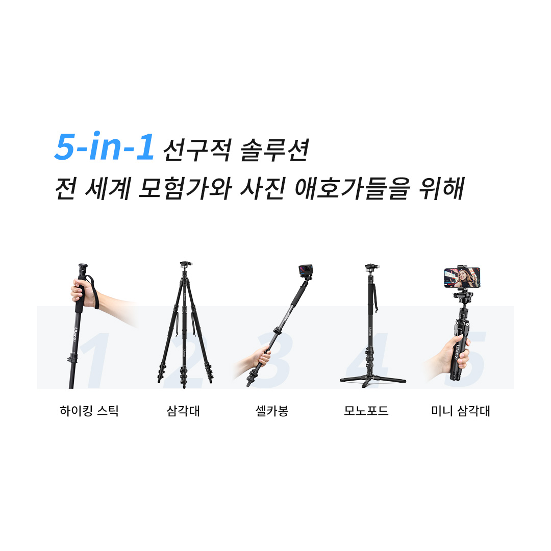 혹시 헷갈리실까봐 노파심에 말씀드리는데, 사진에 나온대로 하이킹/등산 스틱과 삼각대로 활용하려면 키트로 나오는 패키지를 쓰셔야 합니다.