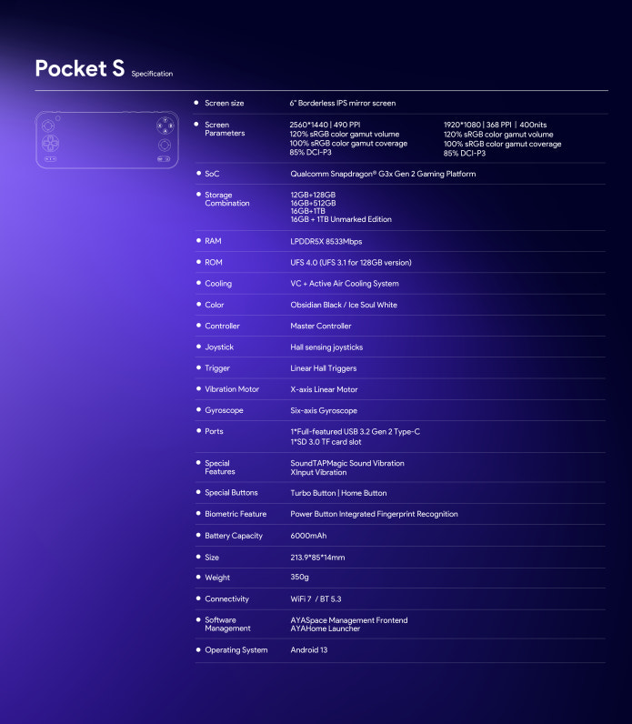 다양한 휴대용 게임 콘솔을 내놓는 아야네오(AYANEO)에서 게임기용 프로세서인 퀄컴 스냅드래곤 G3x Gen 2를 채용한 아야네오 포켓 S(AYANEO Pocket S)를 공개했습니다. 이 제품은 UMPC가 아닌 안드로이드