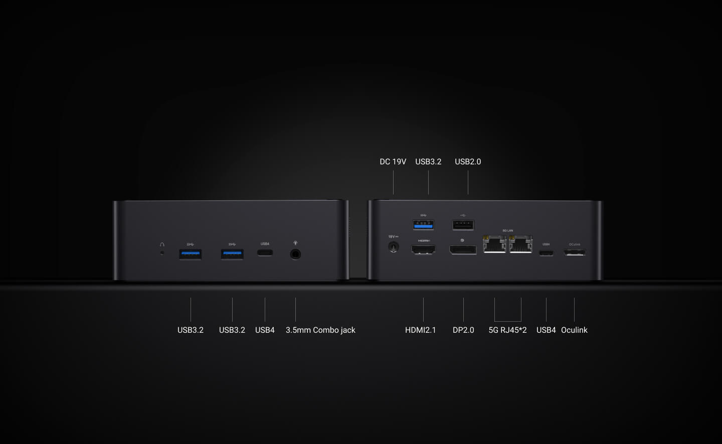 확장 포트로 두개의 5G 이더넷 단자가 있고, 특히 e-GPU를 위한 Oculink가 있는 것도 눈에 띕니다. 3.5mm 오디오 단자도 있군요.