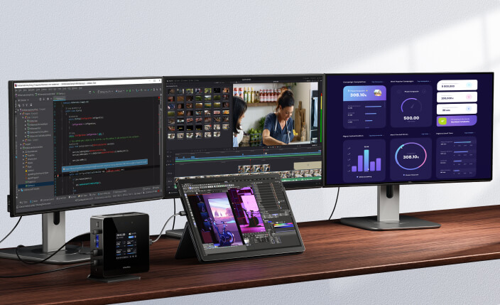 HDMI와 DP, 그리고 두개의 USB4 단자를 이용하면 최대 4개의 디스플레이와 연결 가능합니다.