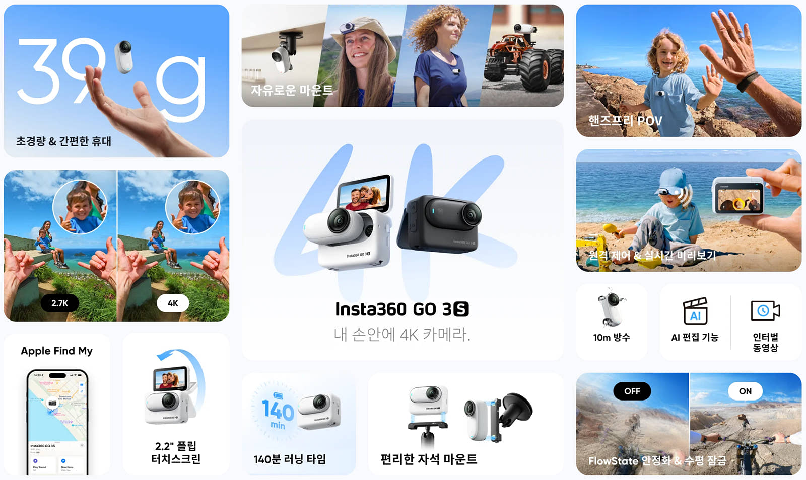 다가오는 여름 휴가철을 맞아 인스타360에서 39g의 정말 가벼운 4K 액션캠, 인스타360 고 3S(Insta360 GO 3S)를 만들었습니다.