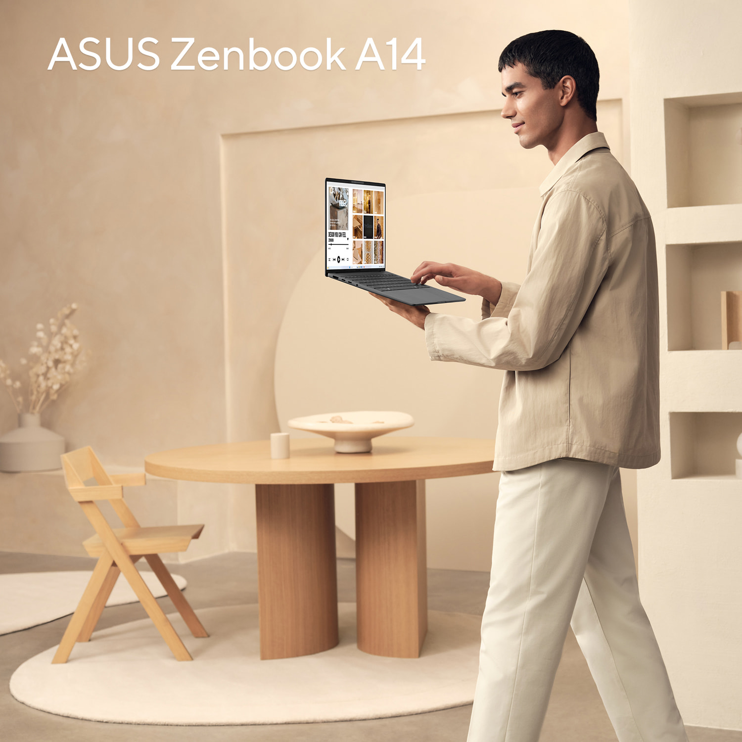 젠북 A14는 노트북 상·하판 및 키보드 프레임에 알루미늄을 세라믹으로 바꾸는 공정을 거친 하이테크 세라믹 세랄루미늄(Ceraluminum) 소재를 적용, 내구성과 경량화를 달성했습니다. 세랄루미늄 소재는 스크래치 방지 기능과 함께 강력한 내마모성과 얼룩 방지 기능이 있습니다.