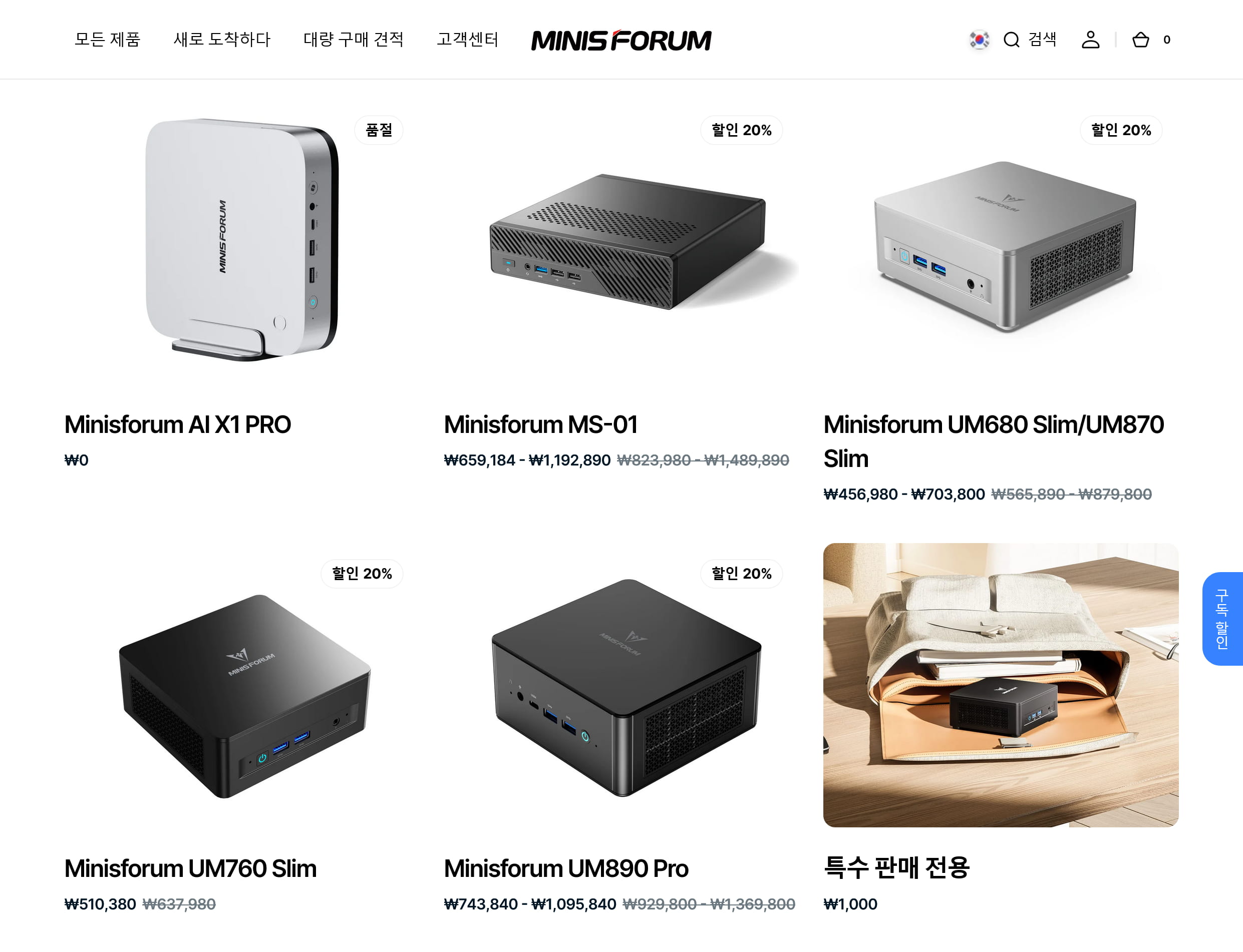 미니PC 업계에서 유명한 미니스포럼(MINISFORUM)의 한국어 공식 홈페이지(https://www.minisforum.kr/)가 열렸습니다.