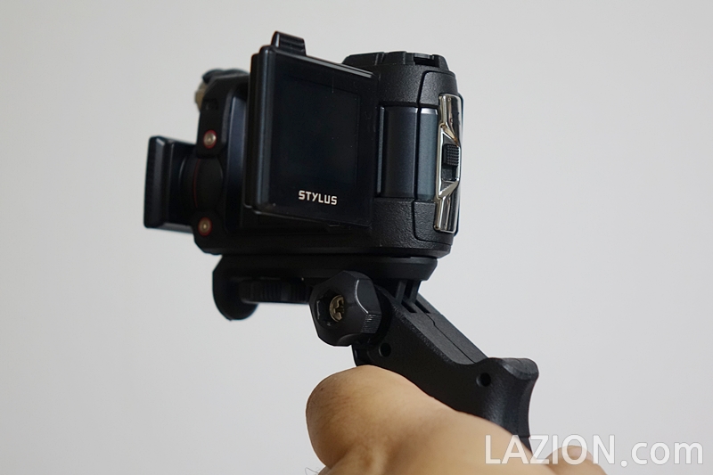 기본으로 제공되는 권총을 연상시키는 손잡이 또한 이 제품의 매력 가운데 하나입니다. 1/4인치 구멍에 들어가는 건지라 다른 카메라도 모양만 맞으면 적당하게 활용할 수 있겠죠.