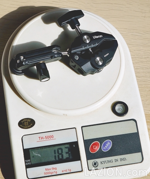 참고로 본체의 무게는 직접 재보니 183g입니다. 휴대용으로는 적당한 수준인데, 이런 거치대에서 또 한가지 중요한 요소가 바로 지탱할 수 있는 제품의 최대 무게겠죠. 울란지 쪽에서는 1.5kg까지 가능하다고 이야기하고 있습니다.