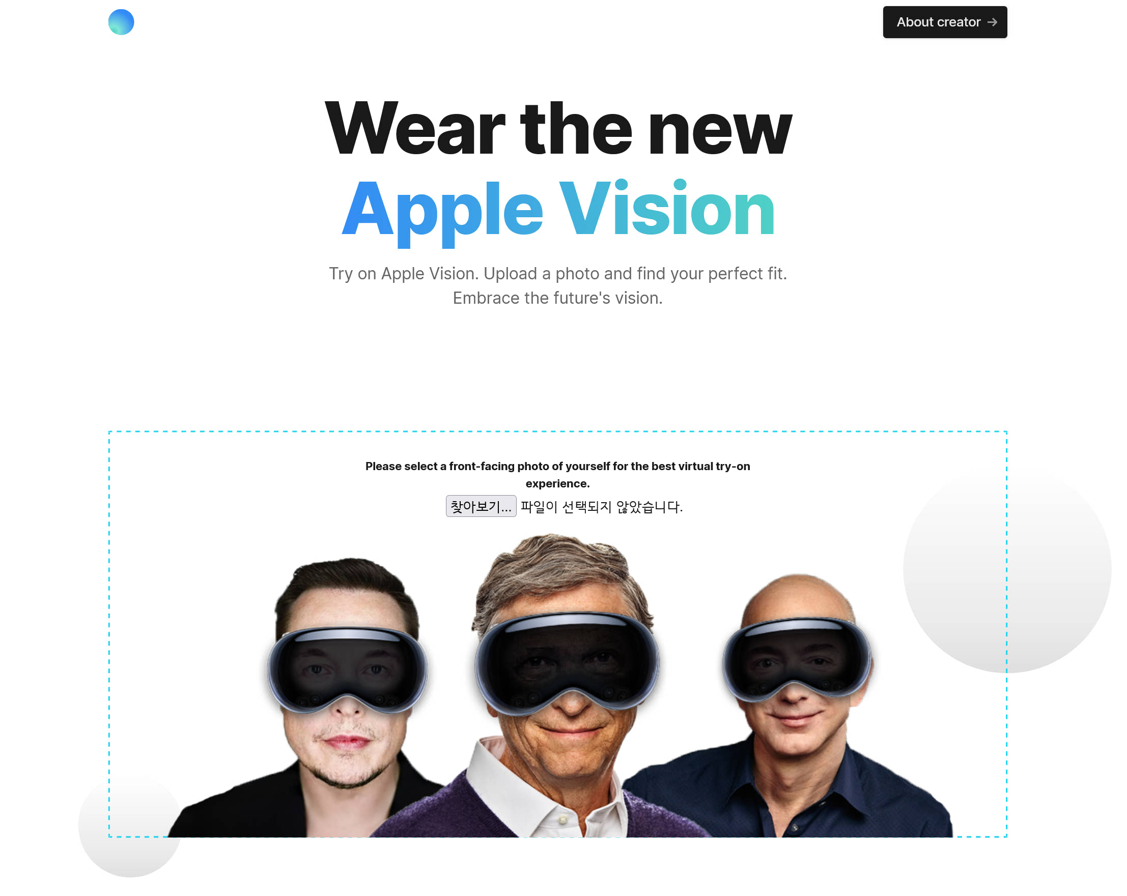 girlazo라는 개발자가 만든 이 Wear the new Apple Vision이라는 사이트는 얼굴 위에 애플 비전 프로를 적당히 확대/축소/회전시켜 맞춘 다음 그 결과물을 다운로드 받을 수 있는 단순한 기능을 갖고 있습니다. 진지하기 보다는 심심풀이로 만드신 듯.
